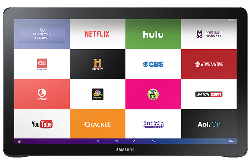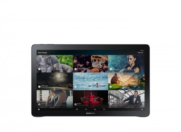 The home screen layout is similar to Roku Smart TV, which is available for $300 that is half the price of this 18.4-inch tablet. The version for the device is Android 5.1 Lollipop along with TouchWiz Samsung’s overlay feature; it works similar to any other tablets by Samsung. No typical screen full of app shortcuts and widgets, instead, the button situated in the middle of navigation bar directs you to a vibrant page full of 4×4 rectangle grids on edge-to-edge. Basically, it drives the idea that the 18.4-inch tablet is a mini android powered TV.